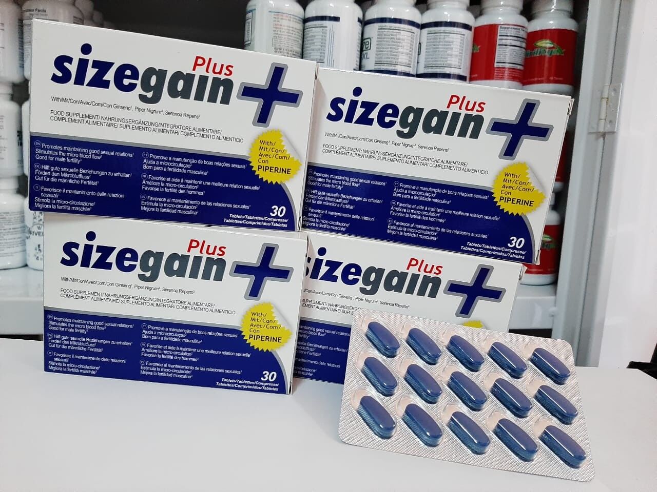 SizeGain plus viene en un frasco de 30 comprimidos por lo que puede que se deba tomar una cápsula diaria. No se recomienda el consumo para personas menores de 18 años.
